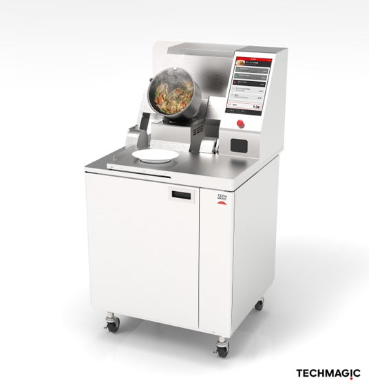 テックマジックが開発した調理ロボットI-Robo は、攪拌、加熱、調理後の鍋の洗浄といった一連の動作を自動化することができるロボットで、炒飯・野菜炒めなど、熟練の職人のレシピを自動で再現します。自動調理においては、メニューに応じて、加熱温度、加熱時間、鍋の回転スピード、回転方向を柔軟且つ適切に調整できます。I-Roboの導入により、人手不足の課題に対し省人化を推進し、人がより付加価値の高い業務に集中できる環境を目指します。