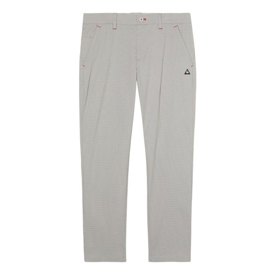 上品な千鳥柄を織りで表現したロングパンツ。ヒップ部分の立体設計や膝まわりのゆとりにより、スイング時の動きをサポートします。快適な動きやすさと、クラシックなデザインを兼ね備えた一本です。