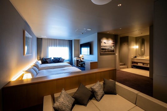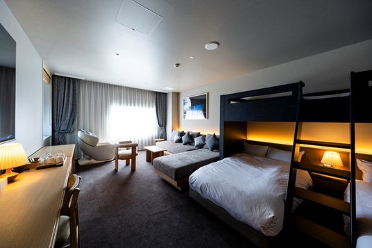 ▲最大5名のラグジュアリースイートではバンクベッド(2段ベッド)を採用。