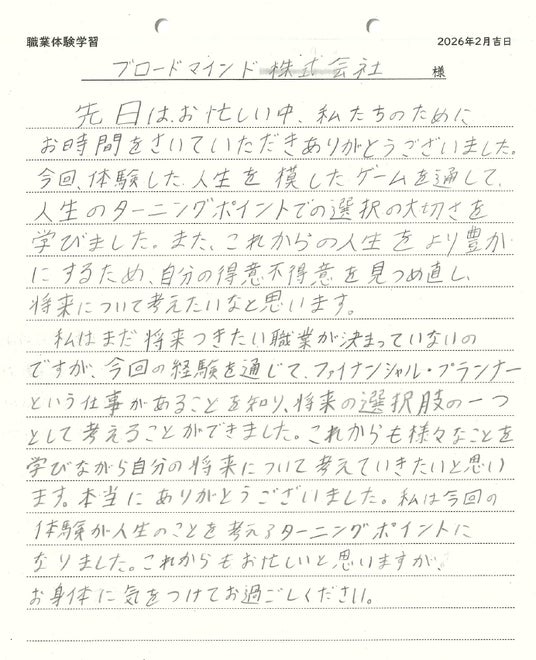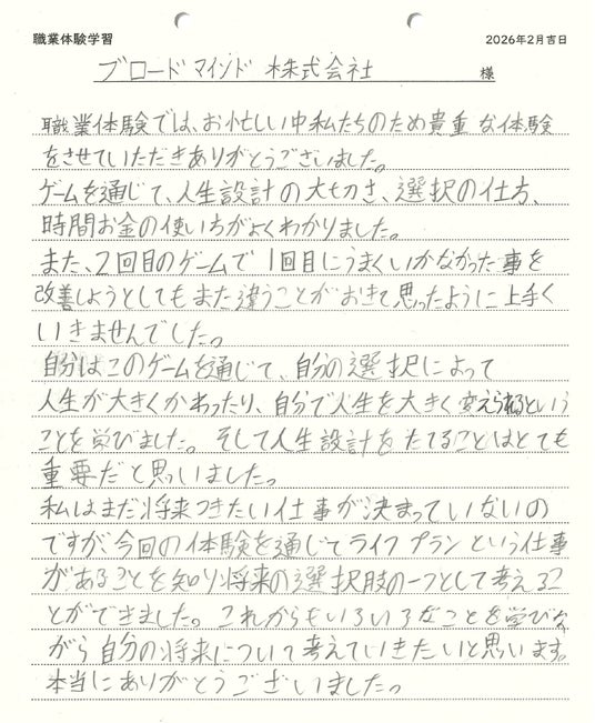 ~“仮想人生体験”を通じてライフプランの重要性を学ぶ~
