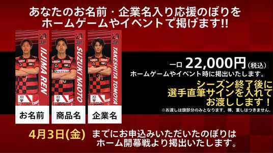4月3日(金)までにご購入いただいたのぼりは、ホーム開幕戦より掲出いたします。