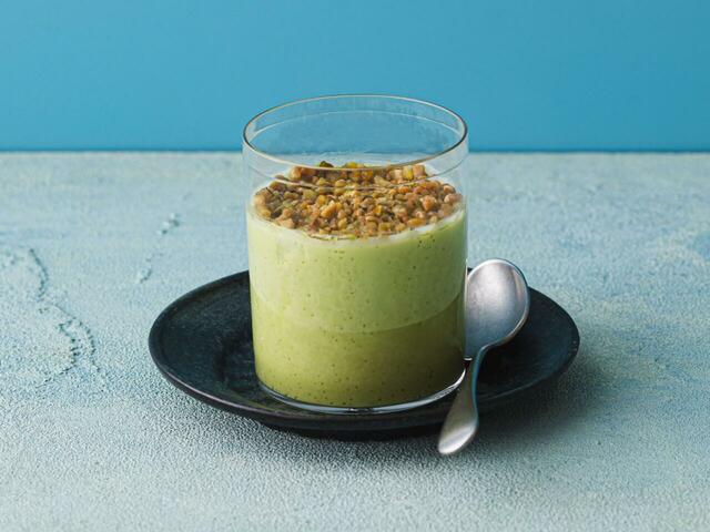 イタリア産のピスタチオと、岩手県「多田自然農場」の新鮮な牛乳を使い、上品なグリーンのプリンに仕上げました。