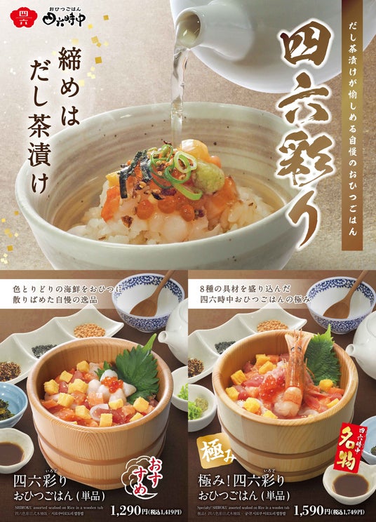 このたび、その取り組みの一環として、大阪メトロ御堂筋線「北花田」駅前という好立地に『おひつごはん四六時中堺北花田店』を新規オープンいたします。北花田エリアは、アクセスの良い駅前立地でありながら周辺に住宅街が広がり、平日の日常利用から週末のハレ型需要まで幅広い集客が見込めるエリアです。こうした多様な利用シーンに応えるため、ランチメニューや夜得コース、時間帯限定のハッピーアワーに加え、スイーツメニューも充実させ、幅広い時間帯で気軽にご利用いただけるメニュー構成が特徴となっております。『おひつごはん 四六時中』は、北海道産昆布と枕崎産鰹節の旨味が凝縮された特製だしを、まずは「食前だし」として味わった後に、海鮮を中心とした「おひつごはん」を味わい、最後に“締めのだし茶漬け”で仕上げる一連の食体験をお愉しみいただける体験型レストランです。海鮮だけでなく、お肉や天ぷらなど多彩な素材のメニューを取り揃え、外食ならではの「食」の楽しさや付加価値をさらに磨き上げながら、立地特性に応じた店舗モデルの展開を進めてまいります。