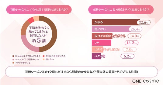 花粉シーズンは多くの人が肌荒れやかゆみ、メイク崩れなどの美容トラブルを実感しており、季節特有の美容ストレスとして定着していることが明らかになりました。