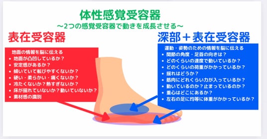 【足裏感覚受容器:前庭感覚(バランスと動き)と固有感覚(力加減・体の位置)】
