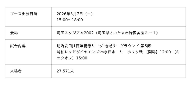 埼玉スタジアム2002へのブース出展は、2025年5月に引き続き、2回目となります。