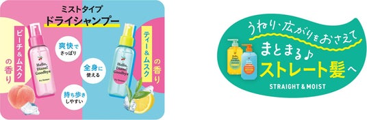 株式会社ネイチャーラボ(本社:東京都渋谷区)は、ヘアケアブランド『Hello, Diane! Goodbye(ハローダイアングッバイ)』から全身に使える「ドライシャンプー(ミストタイプ)」2種と、待望の新ライン「ストレート&モイスト」シリーズを、2026年4月1日(水)より全国のドン・キホーテにて発売いたします。