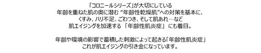 科研ファルマ株式会社(本社:東京都文京区、代表取締役社長:佐久田 啓三、以下「科研ファルマ」)は、長年にわたり「肌に科学ができること」を追求しています。そして、肌の専門家としての皮膚科学の知見を活かし、年齢とともに深刻化する肌の乾燥や肌エイジングのケア※2に悩む方に向けて、“年齢性乾燥肌” に着目したスキンケアブランド 「コロニール」 をお届けしてまいりました。