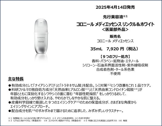 美白※2・シワ改善ケアの先行美容液「コロニール メディエッセンス リンクル&ホワイト」の