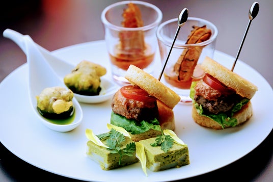 奈良のブランドポークを使用した「ばあく豚サルシッチャのスライダー」は、甘みのある脂とコクが特徴のばあく豚をサルシッチャに仕立て、小さなバーガーとして提供。ハイティーならではの満足感あるセイボリーです。