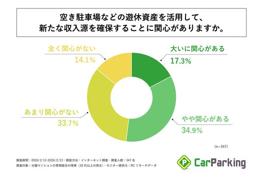 分譲マンション管理組合の理事の半数以上が、空き駐車場などの遊休資産を活用して新たな収入源を確保することに関心がある