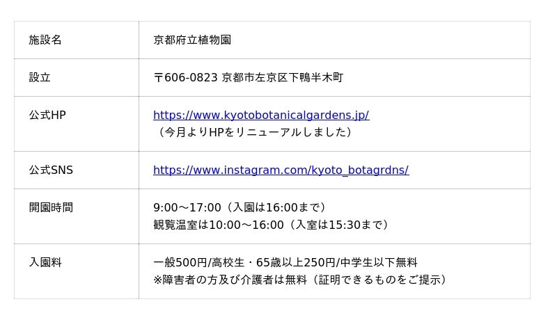 〈京都府立植物園 施設概要〉