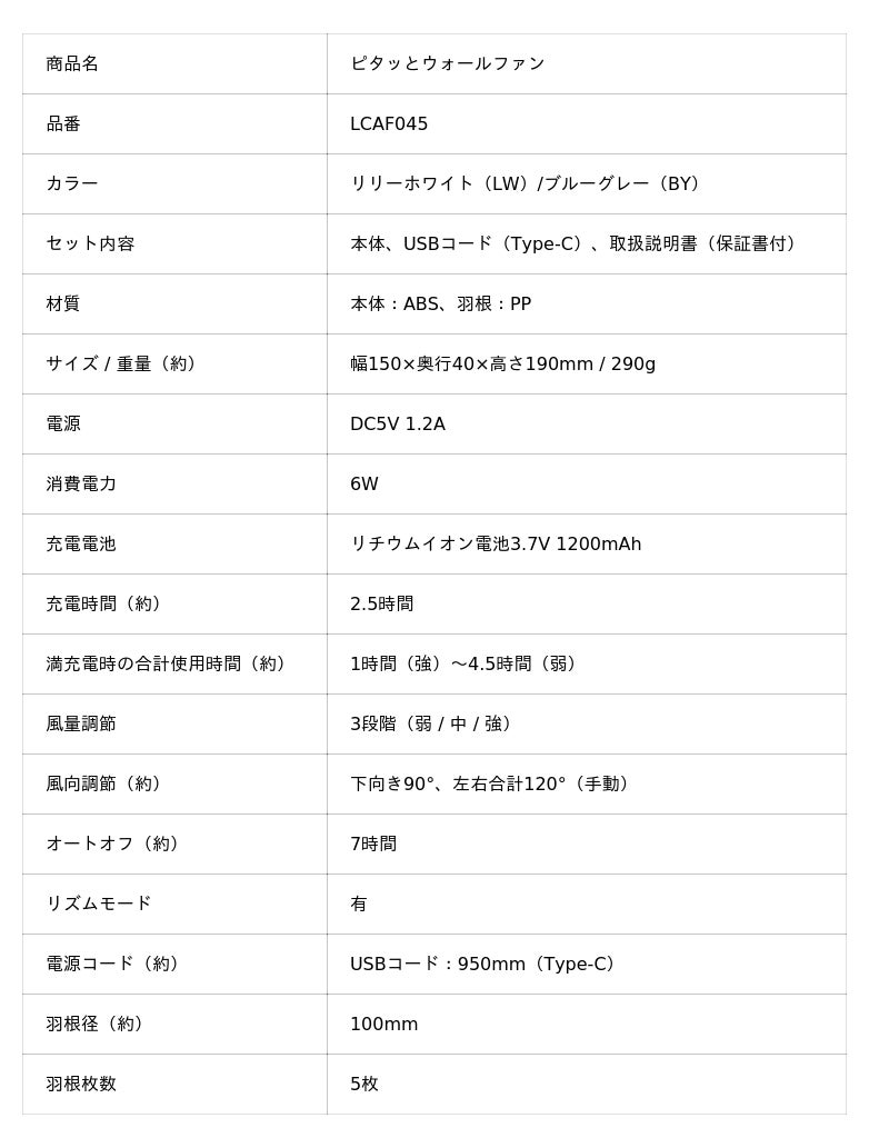 「ピタッとウォールファン」LCAF045