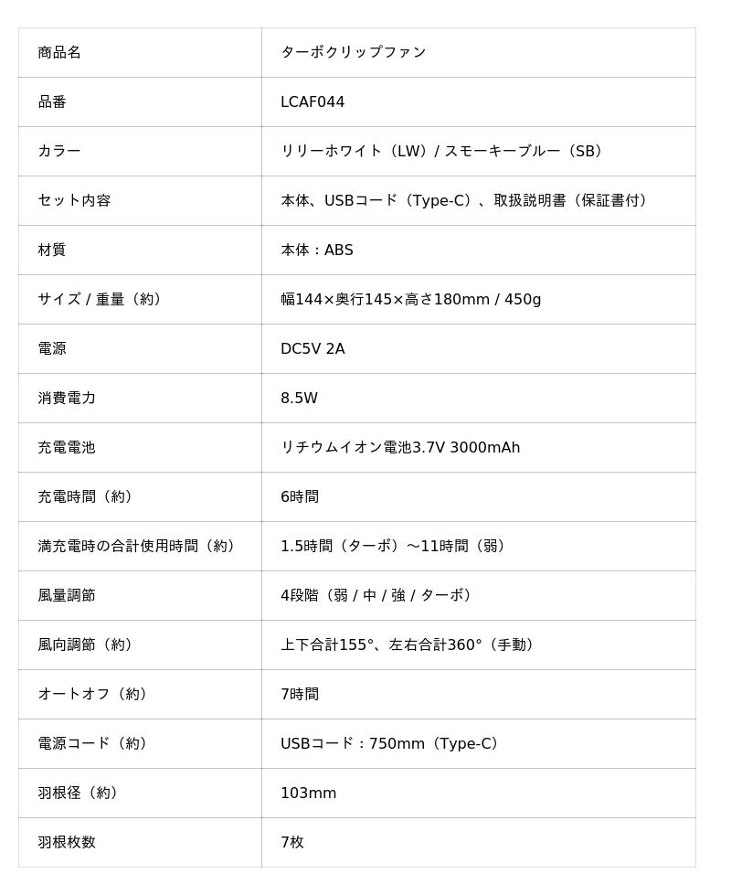 「ターボクリップファン」LCAF044