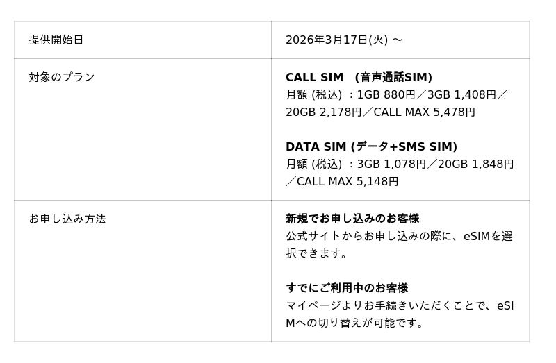 DXHUB株式会社(本社:京都府京都市下京区中堂寺、代表:澤田賢二、以下「DXHUB」)は、2026年3月17日(火)より在留外国人向け通信サービスJP SMART SIMの月額SIMプランサービス (CALL SIM /DATA SIM) において、従来のSIMカードに加わえ、新たにeSIMの新規お申し込み受付を開始いたします。