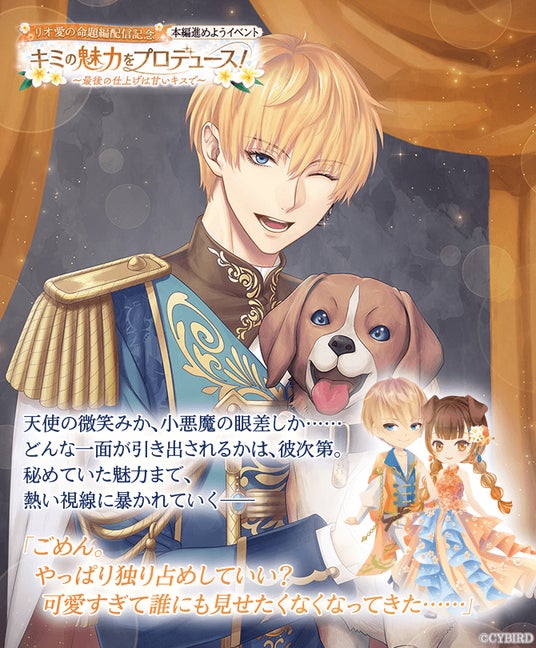 「リオ=オルティス」愛の命題編配信を記念して、アプリ内では本編進めようイベント「リオ愛の命題編配信記念 キミの魅力をプロデュース!~最後の仕上げは甘いキスで~」を、開催しています。