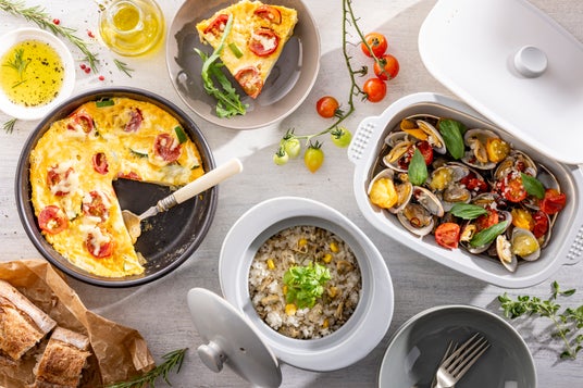 電子レンジのマイクロ波で内面が発熱する特殊プレートを使用。深型・浅型の2枚セットで、焼き・蒸し・温めまで一台多役。魚焼きグリルやオーブン、トースターにも対応し、付属レシピで時短調理が広がるカインズ人気の時短調理アイテム。カレーポット、炊飯鍋、パスタポットなどシリーズ展開も豊富です。