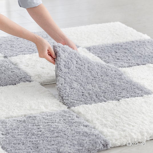ふわふわのシャギー生地で足触りが良く、汚れた部分だけ洗濯ネットに入れて丸洗い可能なタイルラグ。裏面はすべり止め付きでズレにくく、パズルのように自由なレイアウトが楽しめます。リビングや子ども部屋、ペットスペースにもおすすめです。