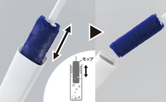 モップ部分を専用ケースに出し入れするだけで、付着したホコリがケース底にたまる「洗わない」ハンディモップ。高密度ブラシが棚や家電周りの細かなホコリもからめ取り、たまったホコリはケースを開けて捨てるだけ。水洗い不要でお手入れ簡単、家中のちょこっと掃除に最適です。
