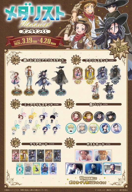 株式会社ブリッジ(本社:東京都千代田区 代表取締役社長:加藤 勝)は、運営するオンラインくじサービス「くじとも」より、TVアニメ『メダリスト』オンラインくじを、2026年3月19日(木)18時より販売します。