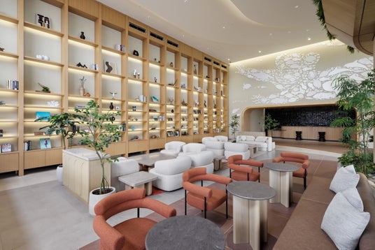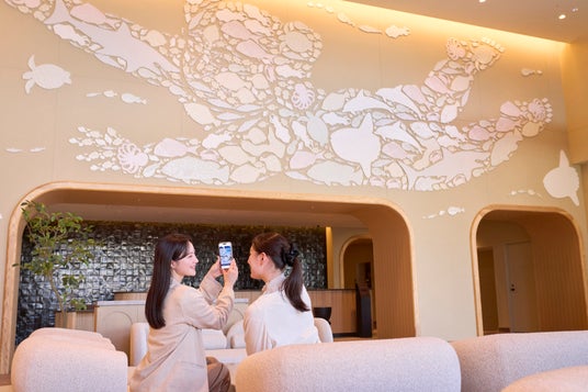 博多人形師 中村弘峰氏が手がけた「Prince of the Ocean」は、太古に海から生まれた私たちの記憶と、福岡・博多の歴史や国際性を重ね合わせた大壁面アートです。25種類・555枚の魚や海洋生物のレリーフが集い、ひとりの大きな“海の王子”の姿をかたちづくる本作は、世界中から訪れる人々や地域の人々のつながり、そして自然と工芸の未来への祈りを象徴しています。二次元コードを読み込み後、壁画にスマートフォンをかざすと、壁画に描かれた人物や魚たちが動きだすとともに、作品の世界がARで広がります。リアルとデジタルが融合した、新しいロビー体験をお楽しみください。またロビーの壁面には、福岡にゆかりのあるデザイナーが手がけたアート作品が飾られており、美術館のような感覚で作品をお楽しみいただけます。