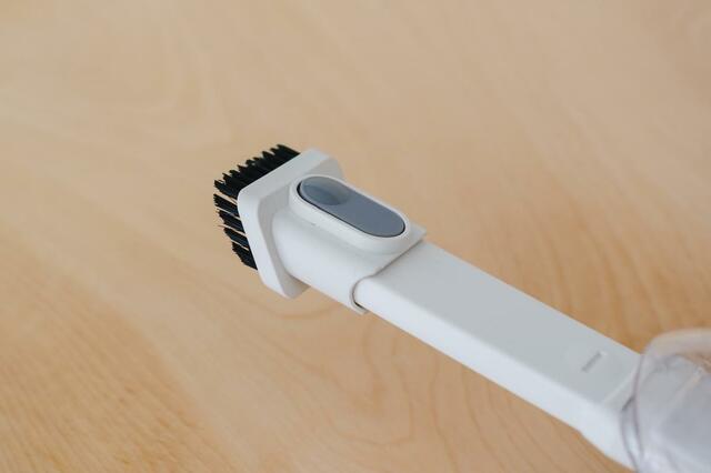 上下にスライドさせるだけで、ブラシノズルと隙間ノズルを切り替えられるので、コーヒー器具のまわりに散った細かなコーヒー粉を吸ったり、キーボードの隙間に入った埃を取ったりと大活躍。