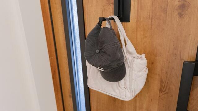 バッグや帽子をまとめて掛けられるので、「おでかけセット」専用の定位置をつくるのにぴったりでした。