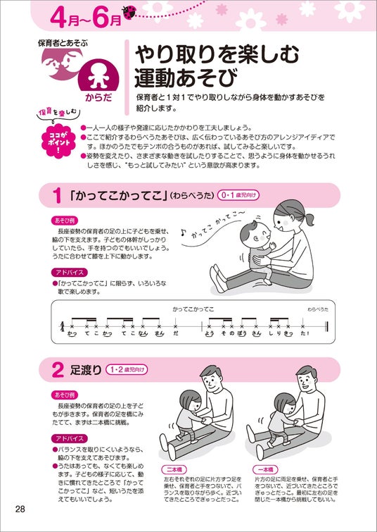 掲載されているあそびはすべて、園で作成する指導計画の「月のねらい」や「保育の内容」に沿って考案。単なるあそびの紹介に留まらず、ウェルビーイングの視点から、保育者自身があそびを楽しむための「ココがポイント!」というアドバイスも充実。日々の業務に追われる保育者の負担を軽減しつつ、質の高い保育の実践をサポートします。