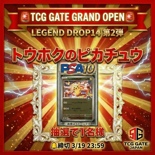 日本のトレーディングカード文化を世界へ発信する拠点として今春・秋葉原にグランドオープンを予定する「TCG GATE」(運営:株式会社Anmore、本社:東京都)は、オープンを記念したカウントダウンキャンペーン「LEGEND DROP14」の第1弾が大きな反響を呼びながら終了したことを受け、第2弾を2026年3月17日(火)12:00より公式Instagramにて開催いたしました。