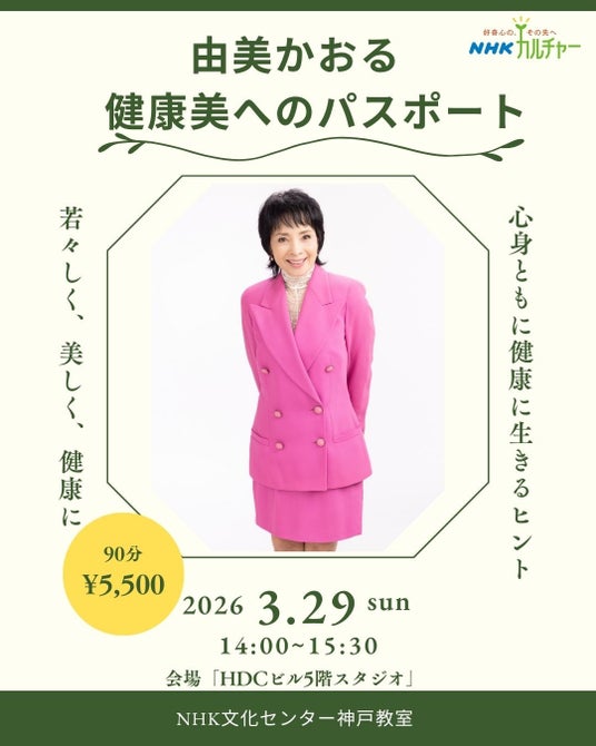 女優・由美かおるさん(75)による講演会「由美かおる 健康美へのパスポート」を、NHK文化センター神戸教室が開催します。会場はJR「神戸」駅前のHDC神戸。貴重なリアルイベントをお見逃しなく!