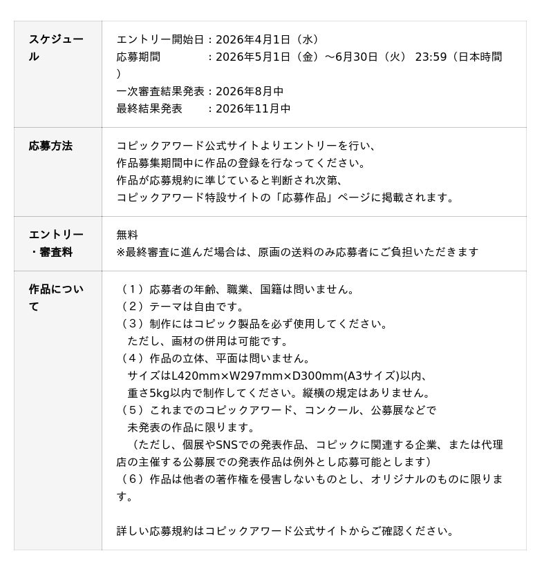 コピックアワード2026開催決定。募集期間は5月1日~6月30日