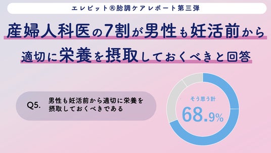 胎調ケアレポート第三弾:約7割※の医師が「男性も妊活前から適切に栄養を摂取しておくべき」と回答