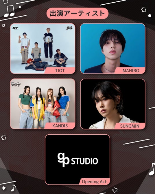 2025年1月のデビュー以来、音楽番組で披露した圧倒的なパフォーマンスが話題となり、SNSでも「新人離れした生歌」として注目を集めるガールズグループ Kandis が出演。さらに、K-POP第5世代を代表するボーイズグループ TIOT も登場し、次世代K-POPシーンを牽引するパフォーマンスを披露します。