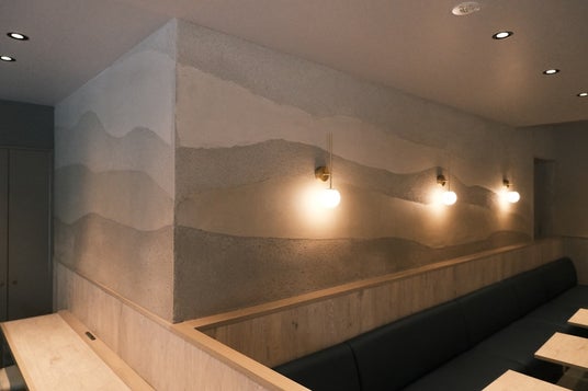 ・タリーズコーヒー店舗で排出されたコーヒーグラウンズを再利用し、地層をモチーフにした壁面