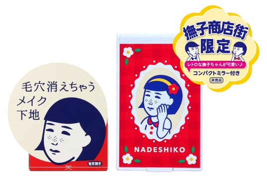 イベント期間中「毛穴撫子 毛穴かくれんぼ下地」に撫子ちゃんのコンパクトミラーが付いた、限定セットを発売いたします。