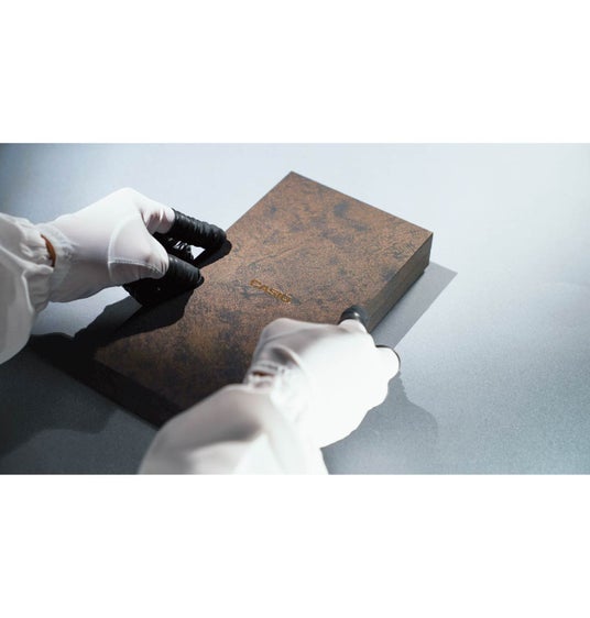 今回、特別仕様のパッケージは、芯材を用いた堅牢な箱に、深みのある黒地に伝統的な金模様をあしらい、カシオのロゴには金箔押しを施しました。日本の美意識を感じさせるデザインで、所有する歓びを一層高めます。