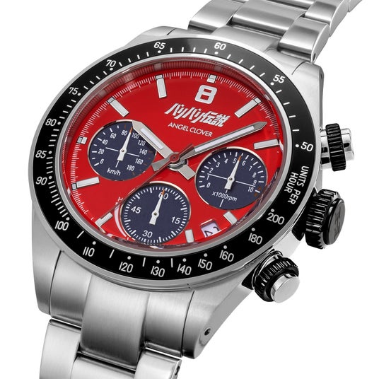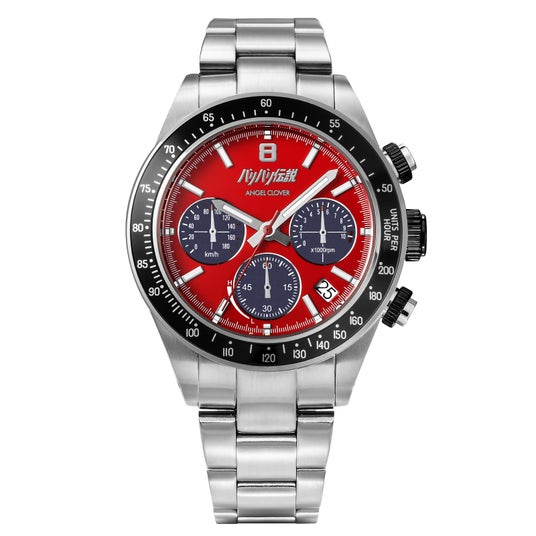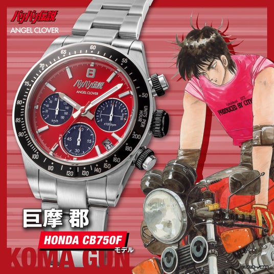 峠の最速を目指し、やがて世界のロードレースへ――。 『バリバリ伝説』の主人公・巨摩 郡をイメージした文字盤には、彼の情熱的なキャラクターと巨摩郡が駆る1980年代の名車HONDA CB750Fを象徴する、鮮やかなレッドカラーを採用。奥多摩街道の峠のタイトコーナーへフルバンクで飛び込み、 膝すりでアスファルトをかすめながら駆け抜けていく。そんな攻めのライディングを思わせる、スポーティで力強いデザインが魅力です。まさに峠カルチャーの熱気を感じさせながら、ファッションウォッチとしても存在感を放つ一本に仕上がっています。