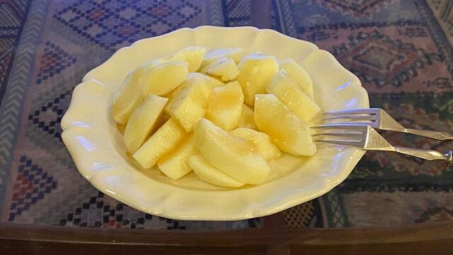 りんごに蜂蜜をかけて食べる。