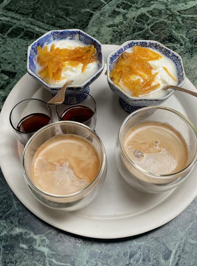 カフェオレ、今日の元気、ヨーグルト+マーマレード、プロテイン。