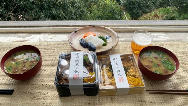 SUZUKIYA 葉山店で金、土、日だけ販売される「日影茶屋」のお弁当が美味しい。今日の販売は「牛時雨煮ご飯」と「かつをごはん」の2種。糠漬けも買ってみたけど、お弁当には敵わない。なめこと三つ葉の味噌汁は作りました。