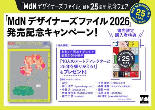『MdNデザイナーズファイル』は、前身となる「MdNクリエイターズ・ファイル」から数えて、創刊から25年を迎えます。「時代の空気を映し出すデザイン年鑑」として、これまで多くの読者の方に支持されてきました。2026年3月10日(火)には、創刊25周年となる新刊書籍『MdNデザイナーズファイル2026』を発売しました。