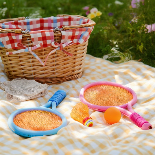 持ち運びに便利なコンパクトサイズで、シャトルとボールがセットになっています。少し体を動かしたい時に。※写真内の「ピクニックバスケット」と「レジャーシート」は、セットには入っていません。