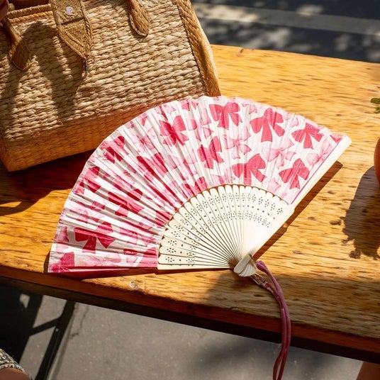 日差しが強い日は、意外と暑く感じることも。そんな時は、バッグにリボン柄のキュートな扇子をこっそり忍ばせて。
