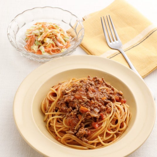 子どもも大好き! ワンパンで作れるパスタとマヨサラダ ミートパスタの献立