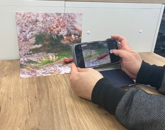 1. 開発ストーリーJTB時刻表Facebookの模型紹介をしている編集部員たちの何気ない会話から始まりました。「鉄道模型の撮影時にいい背景ってなかなかないよね」「机上だと、何か物足りない」といった言葉から、背景写真のシートの制作がスタートしました。手持ちの鉄道模型をより“実物らしく”撮影できるアイテムとして、1年にわたり試行錯誤を重ねて「3D撮影シート」(縦344mm × 横250mm)が完成しました。長期間の検証と改良を繰り返し、模型撮影のリアリティを最大限に引き出すことを目指して仕上げたこだわりの一枚です。