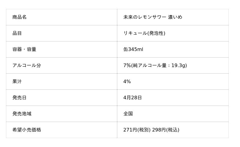 4月28日『未来のレモンサワー 濃いめ』期間限定発売を皮切りに『未来のノンアル レモンサワー』、本物果肉入り「贅沢搾りデラックス」を数量限定発売