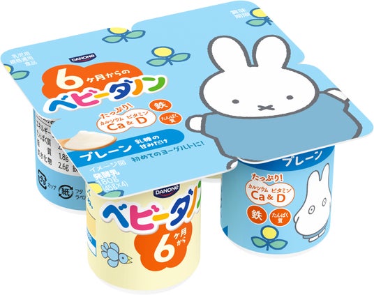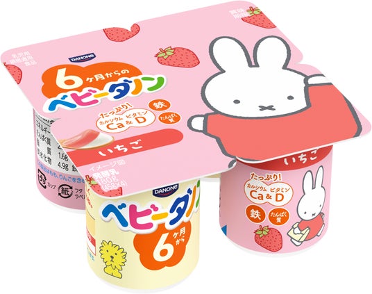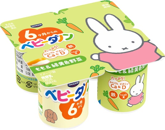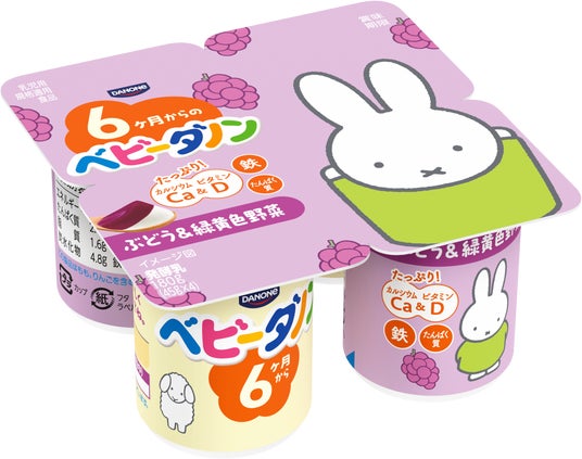 昨年より2026年3月までの期間限定で展開していた「ベビーダノン×ミッフィー」のコラボパッケージは、多くのご家庭からご好評をいただき、2027年3月まで展開を延長することが決定しました。さらに、離乳期の赤ちゃんに大切な栄養素がより分かりやすく伝わるよう、「プチダノン」と同様に栄養表示を見やすく刷新しています。