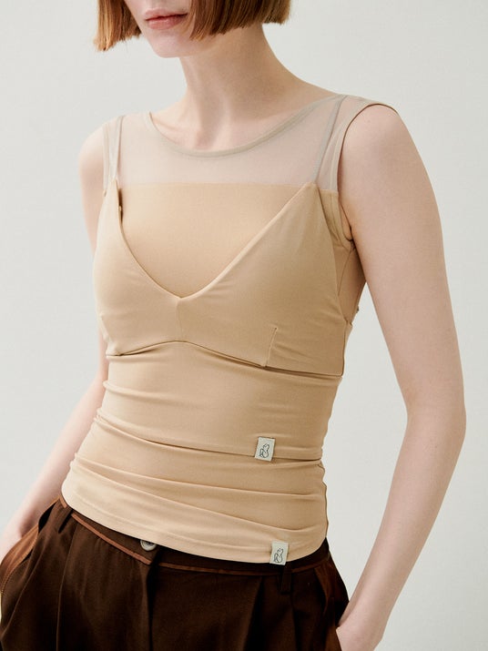 ストラップを取り外しチューブトップとしても着用可能な、カップ付きキャミソールインナー。