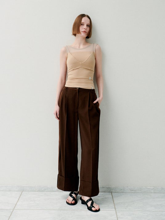 深めに設定したネックラインで、合わせるトップスを選ばず着用できる一着に仕上げました。