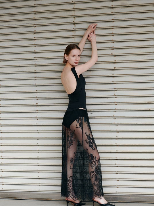 バックオープンのアイテムにも対応できるよう、背中の開きを深く設計しました。